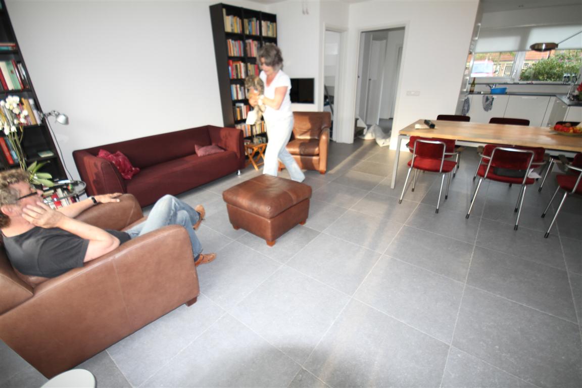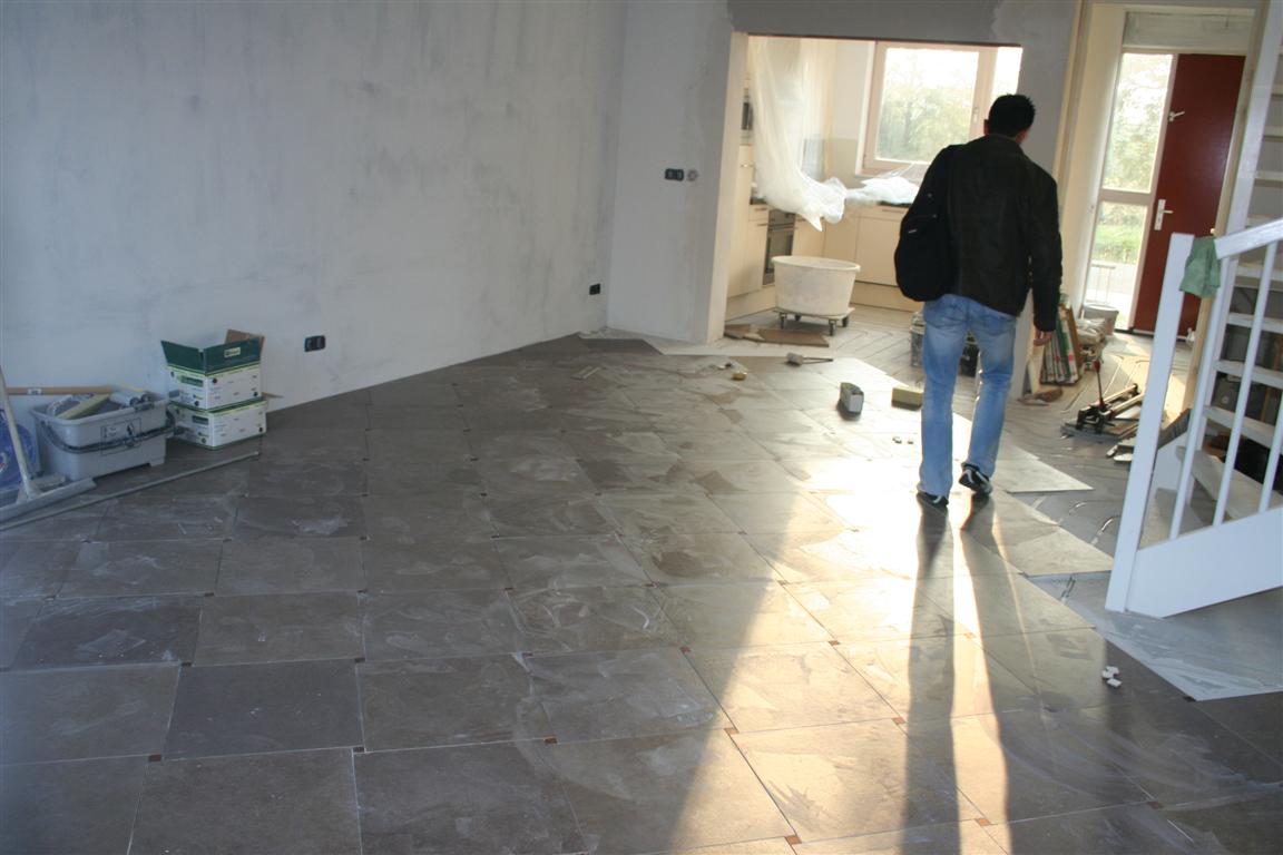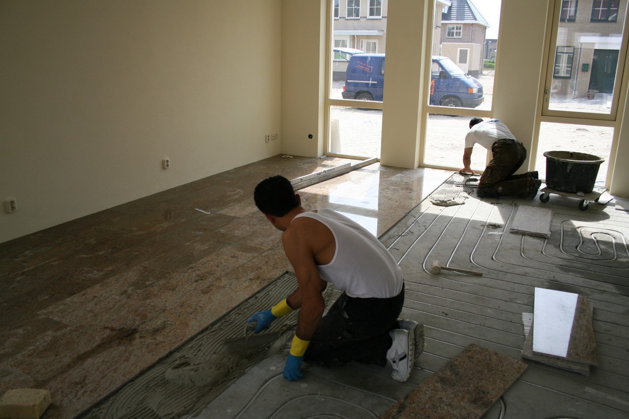 Het leveren en het leggen van gepolijst vloertegels met vloerverwarming als hoofdverwarming bij Fam.Van den Heiden in Almere.