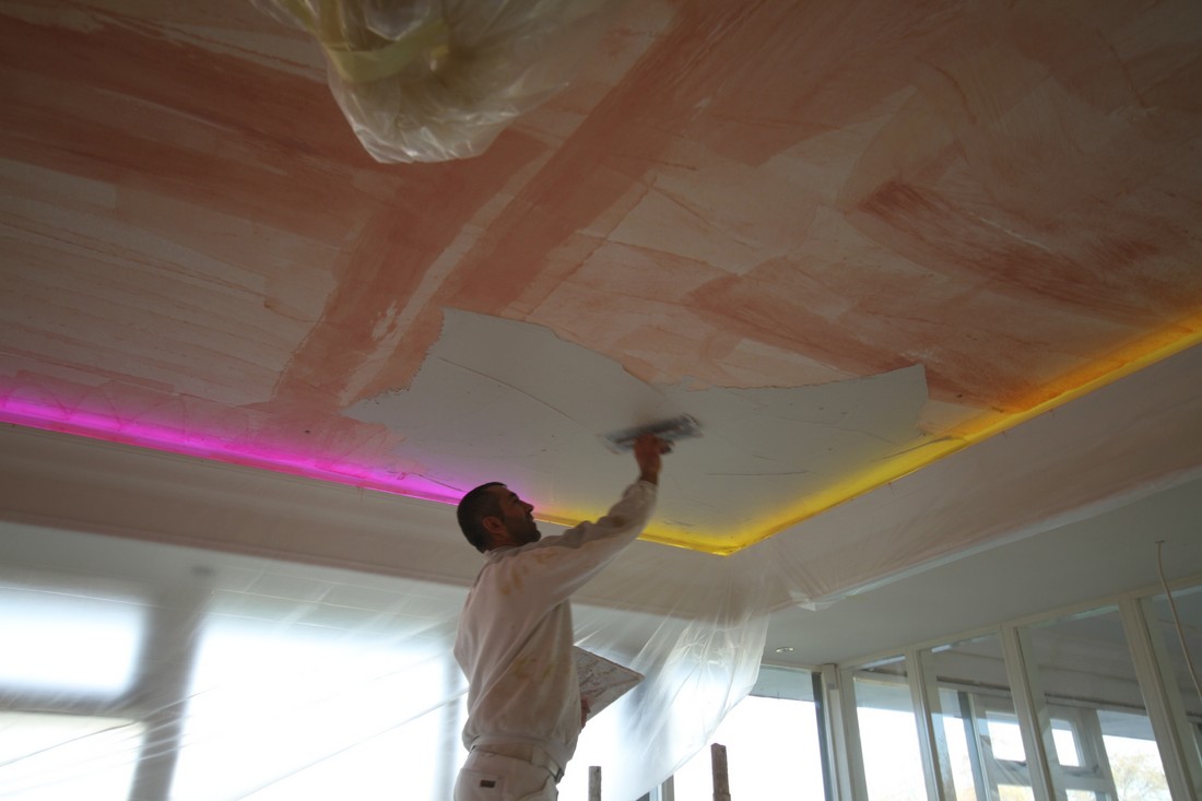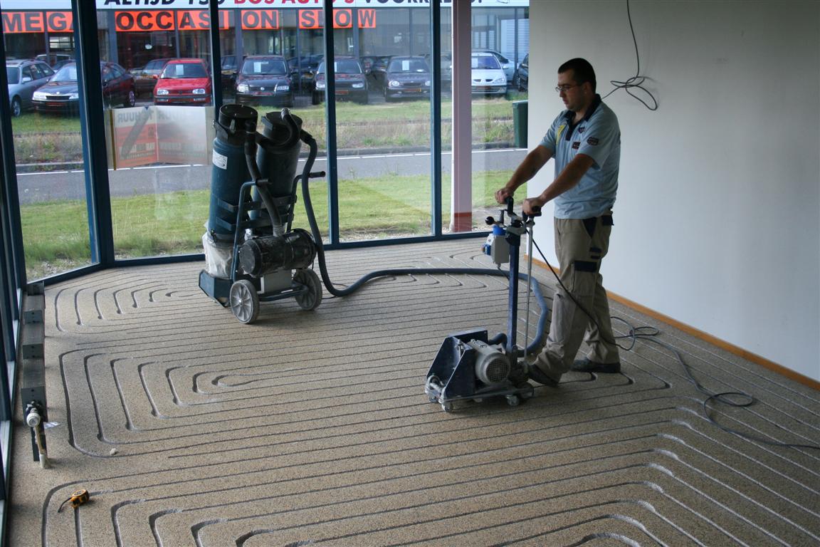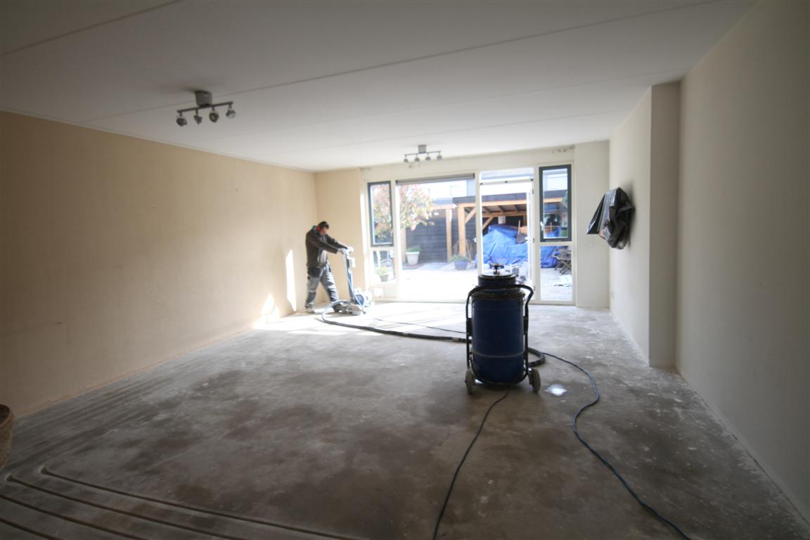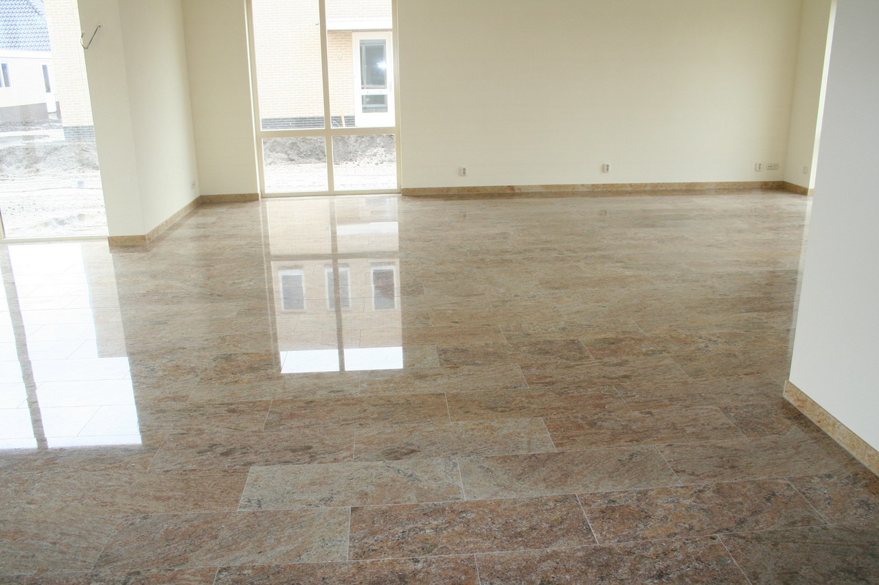 Het leveren en het leggen van gepolijst vloertegels met vloerverwarming als hoofdverwarming bij Fam.Van den Heiden in Almere.