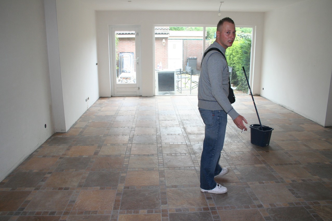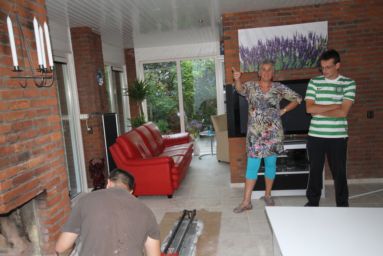 Na oplevering bij fam.deutsz ,het leveren en het leggen van vloertegels in huizen met vloerverwarming.